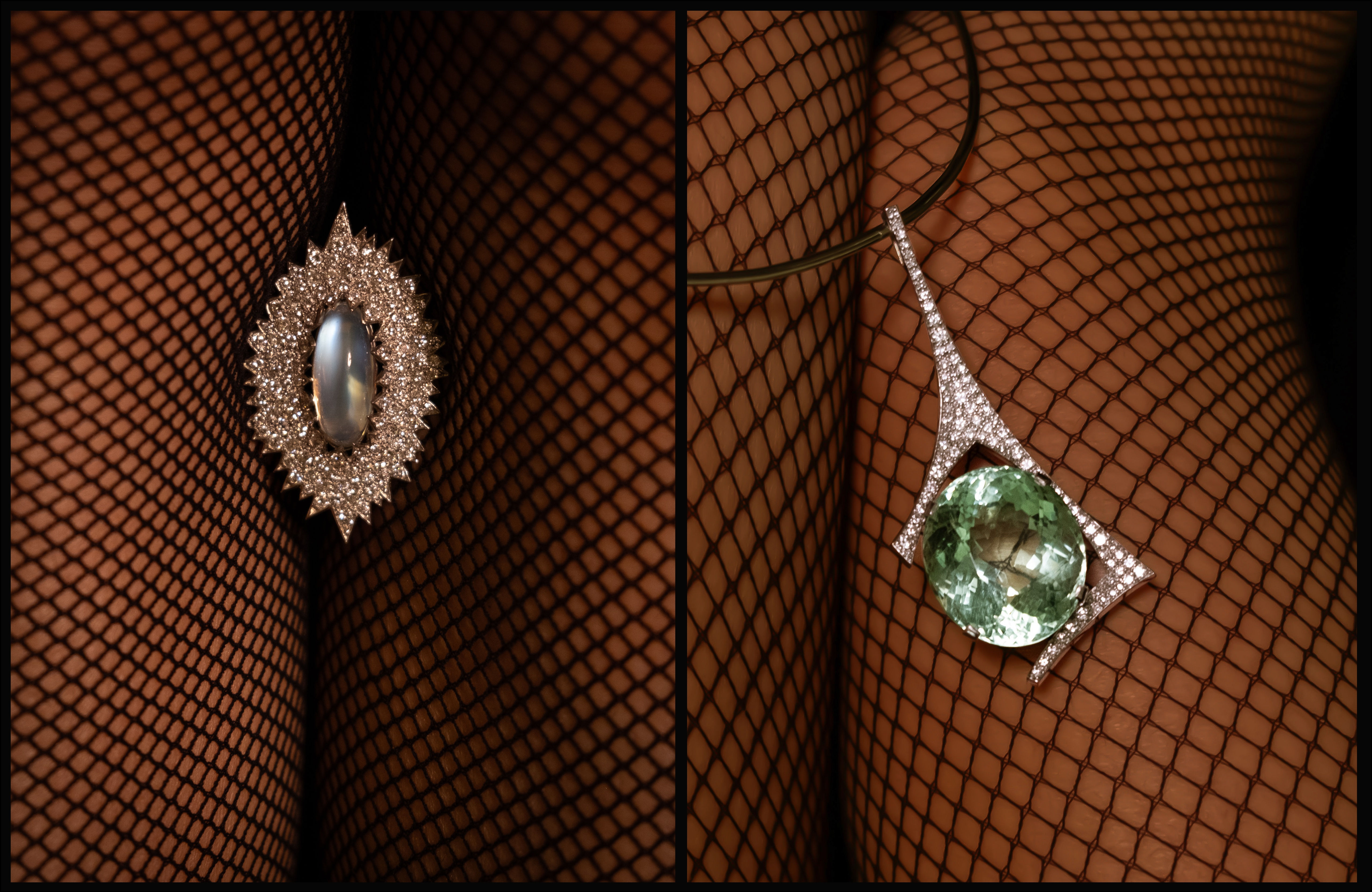 Inspired by his aesthetic and approach, I set out to explore similar themes in my own photography. I was particularly interested in the interplay of texture and form, and how different materials could interact to create visual tension. I experimented with composition, using jewellery as a focal point against the natural curves of the body, and incorporating fishnets to introduce an additional layer of depth and complexity.