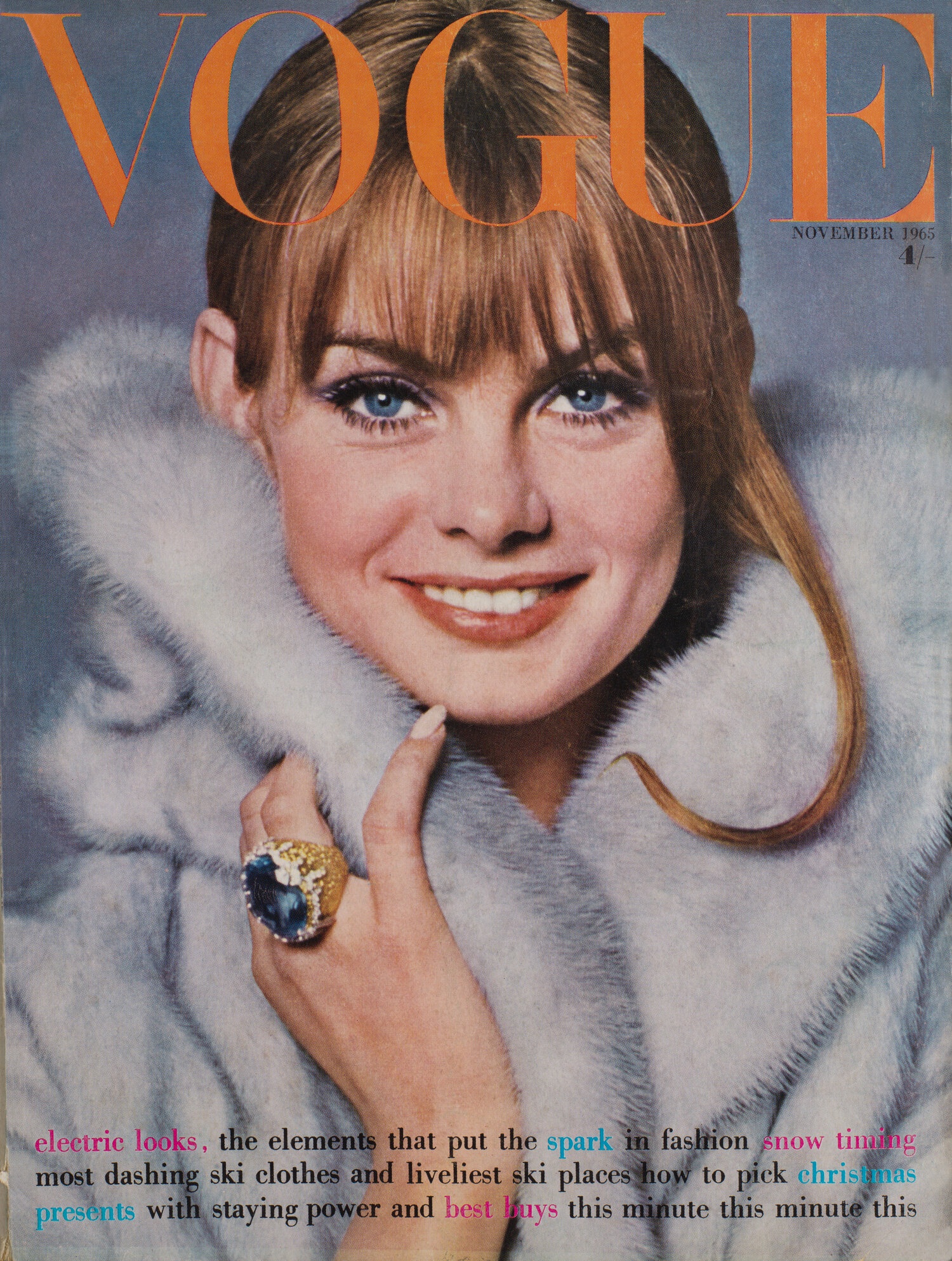 Jean Shrimpton photographed by David Bailey for the cover of Vogue modelling a large Grima aquamarine ring - November 1965